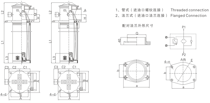 本過(guò)濾器直接安裝在油箱蓋板上,過(guò)濾器頭露在油箱外,回油筒體浸入油箱內(nèi),進(jìn)油口設(shè)有管式與法蘭式連接,從而簡(jiǎn)化了系統(tǒng)管路,使系統(tǒng)布置較為緊湊,安裝連接更方便。