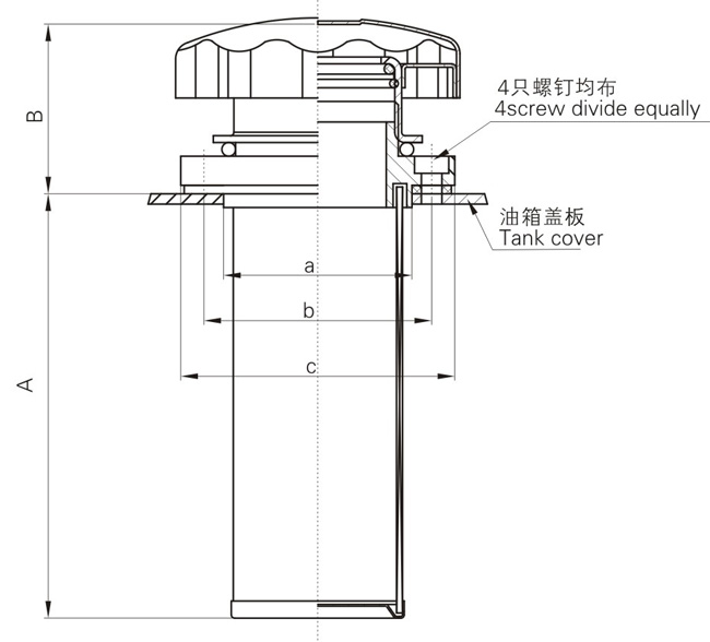 當(dāng)液壓系統(tǒng)工作時(shí)油箱內(nèi)油面時(shí)而上升或下降,上升時(shí)由里向外排出空氣,下降時(shí)由外向里吸入空氣。為凈化油箱內(nèi)油液,在油箱蓋板上垂直安裝空氣濾清器,就可以過濾吸入的空氣;同時(shí)空氣濾清器又是注油口,注入的新工作油液,須經(jīng)過濾再進(jìn)油箱,從而濾除了油液內(nèi)的臟物顆粒。